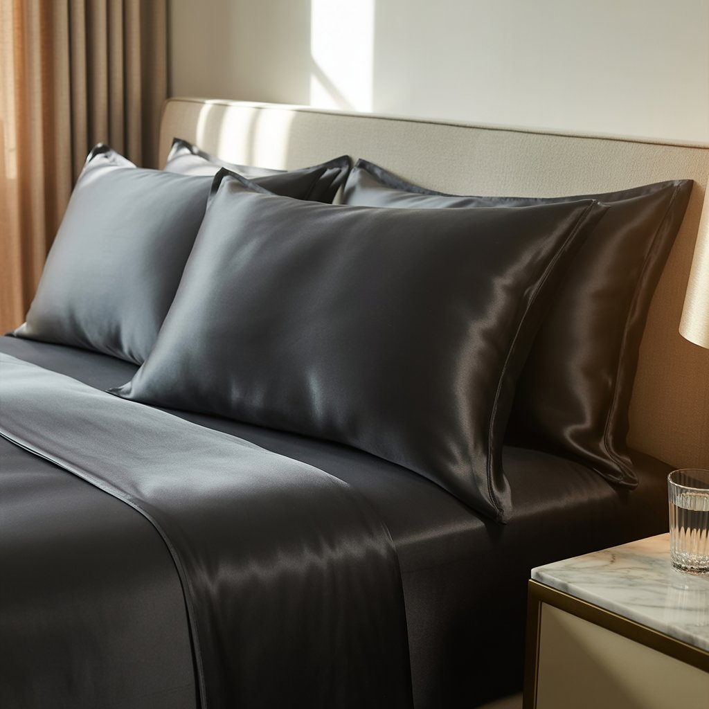 Foreva Saf İpek – Siyah Yastık Kılıfı, cildine ve saçına ipeğin zarif dokunuşunu sunar.
